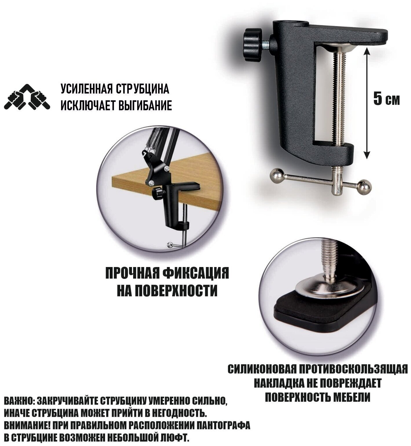 Подставка/крепление Усиленная стойка пантограф ST-34P25 с зажимом для планшета 12-25 см с нагрузкой до 1.6 кг