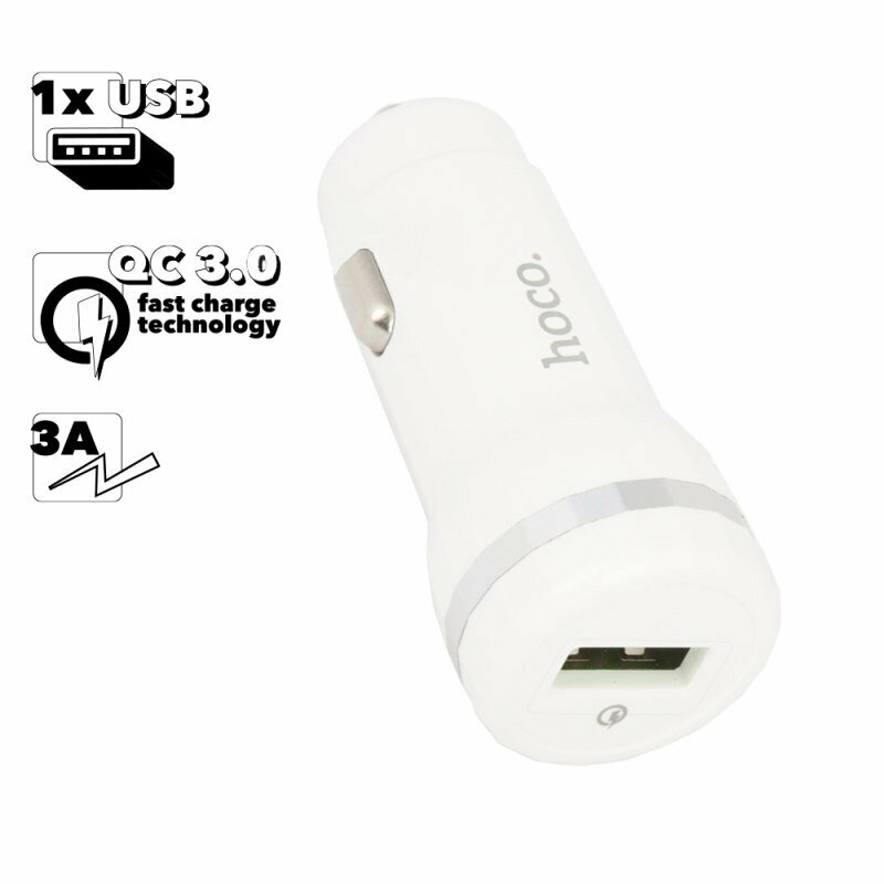 Зарядное устройство Автомобильная зарядка HOCO Z27A Staunch 1xUSB, 3А, 18W, QC3.0 (белая)