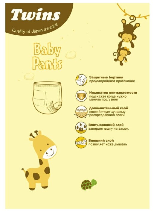 Подгузники Подгузники-трусики детские Twins, М, 8-13 кг, 64 шт