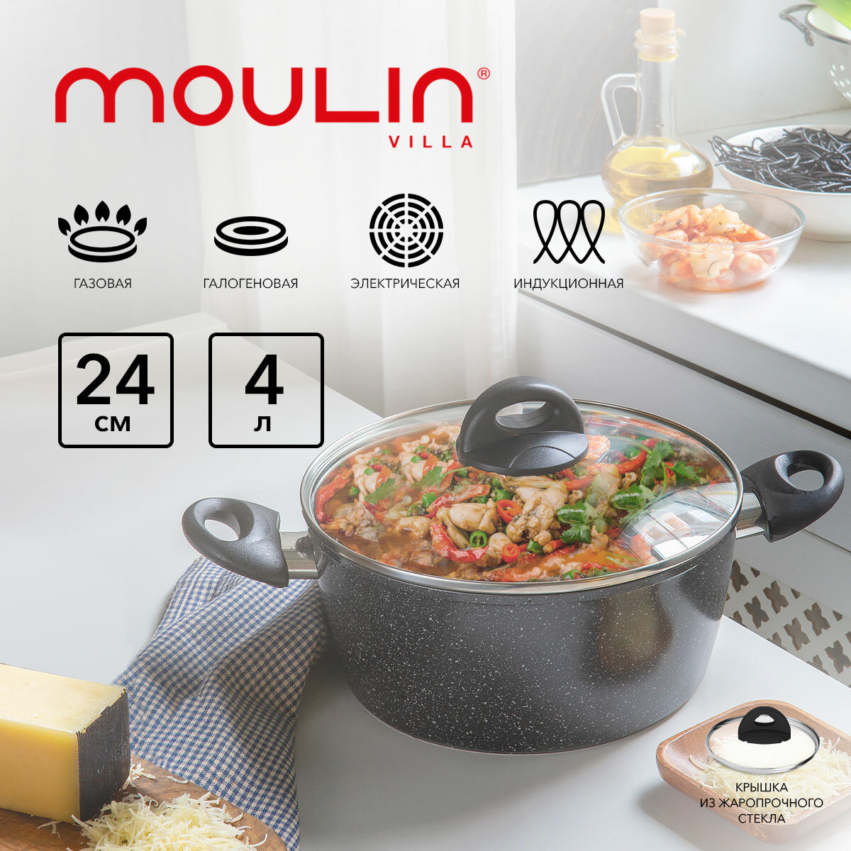 Лучшие цены. В кастрюле антипригарной Moulin Villa Sparks можно разогреть суп, приготовить гарнир или вкусную и полезную кашу на завтрак, сварить компот или морс. Она также может быть использована как сковорода: в кастрюле можно обжаривать продукты. Толщина дна: 3 мм; толщина стенок: 2,8 мм. Изготовлена методом ковки, что наделяет её лучшими качественными характеристиками: прочностью и износостойкостью. Крышка с металлическим ободком и паровыпуском в комплекте. Магазины в вашем городе.