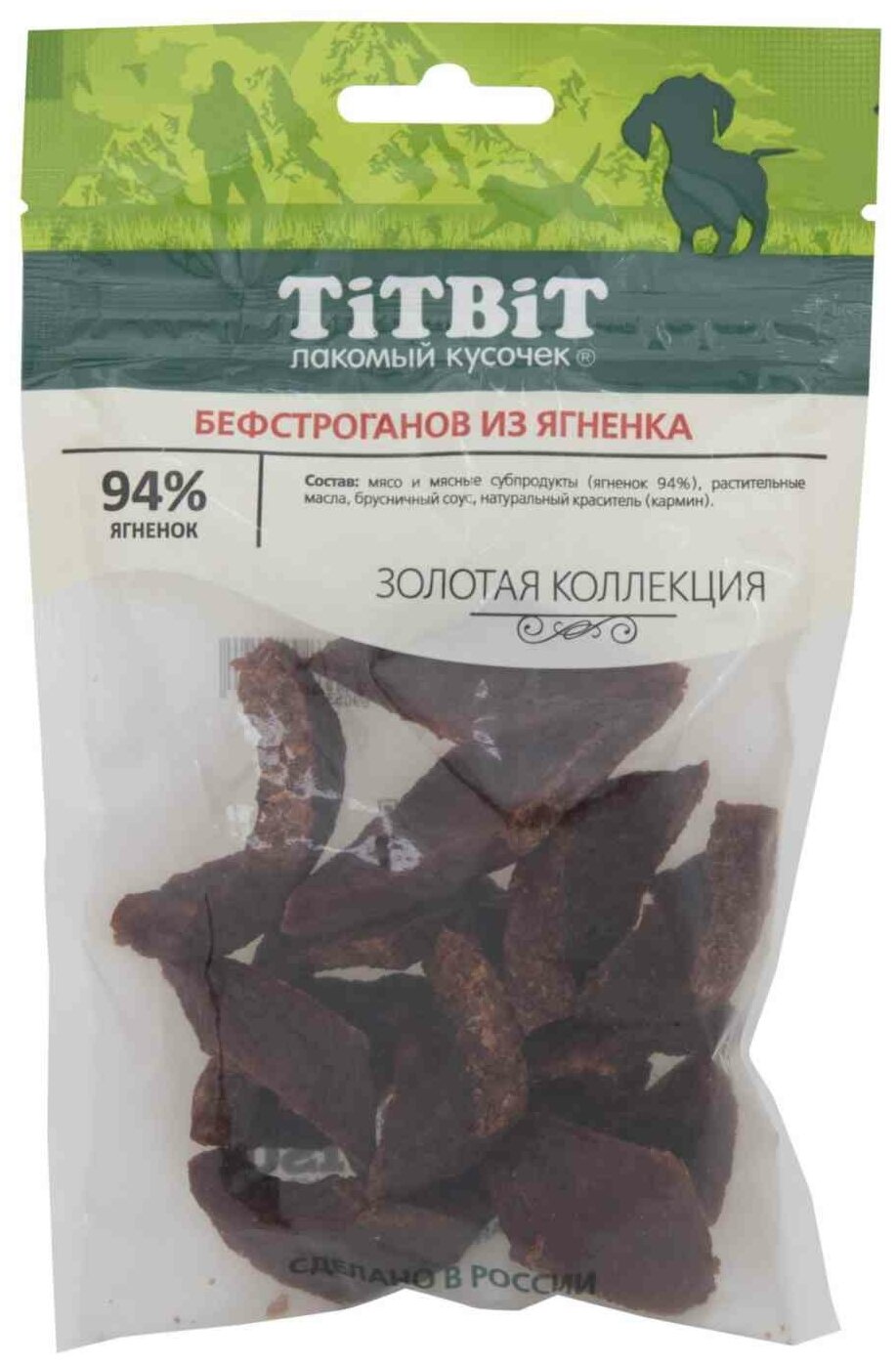 Корм для собак TiTBiT "Золотая коллекция" лакомство для собак бефстроганов из ягненка - 75 г