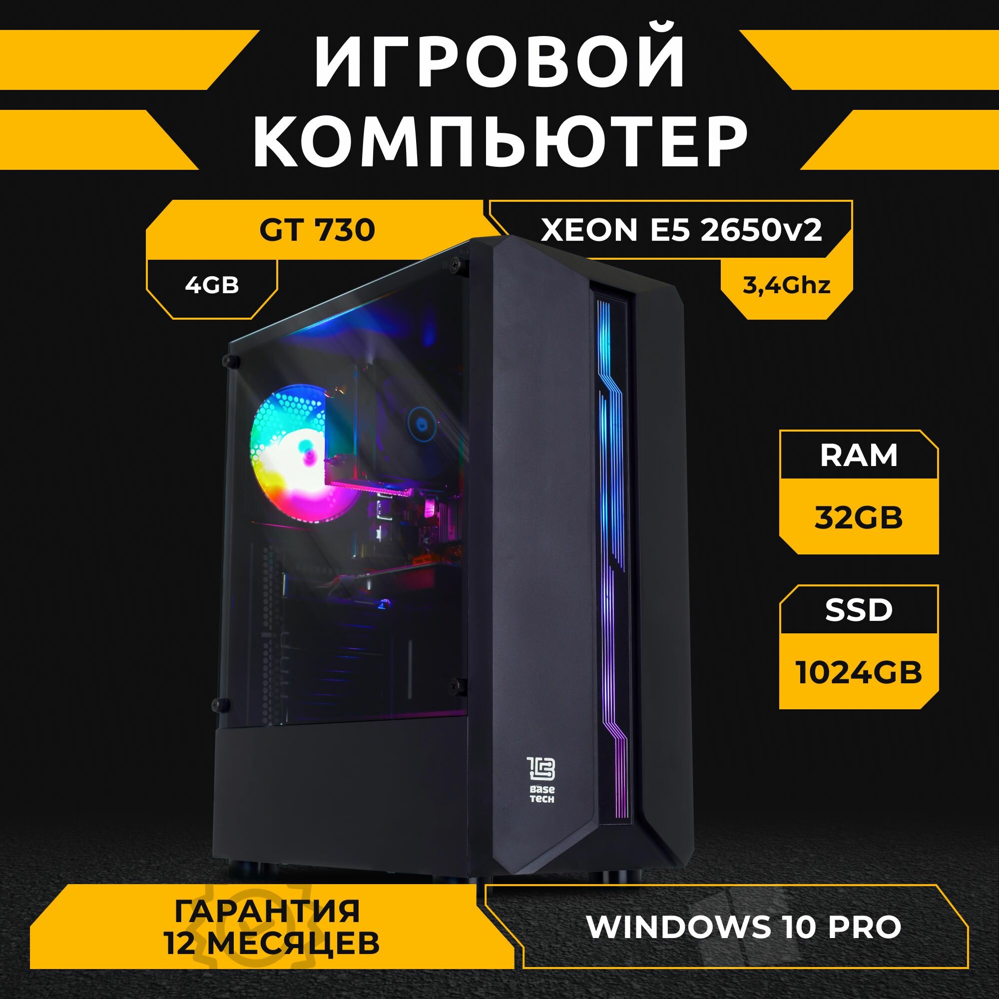 Персональные компьютеры Игровой компьютер B-Zone ПК Intel E5 2650V2, GT 730 4GB , 32GB , 1024GB SSD , Windows 10 Pro