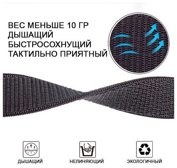 Лучшие цены. Невесомый (вес меньше 10 гр.) ремешок из нейлона. Быстросохнущий, дышащий, нелиняющий идеально подойдет как для повседневного использования, так и для тренировок в спортзале и на улице. Липучки (по 4 шт. с каждой стороны) надежно фиксируют ремешок на запястье. Длинна ремешка 290 мм. Совместимость с часами Garmin: Epix Gen 2 Fenix 5 Fenix 5 Plus Fenix 6 Fenix 7 Quatix 5 Quatix 6 Forerunner 935 Forerunner 945 Approach S60 Approach s62 D2 Delta Instinct Instinct 2 MARQ. Магазины в вашем городе.