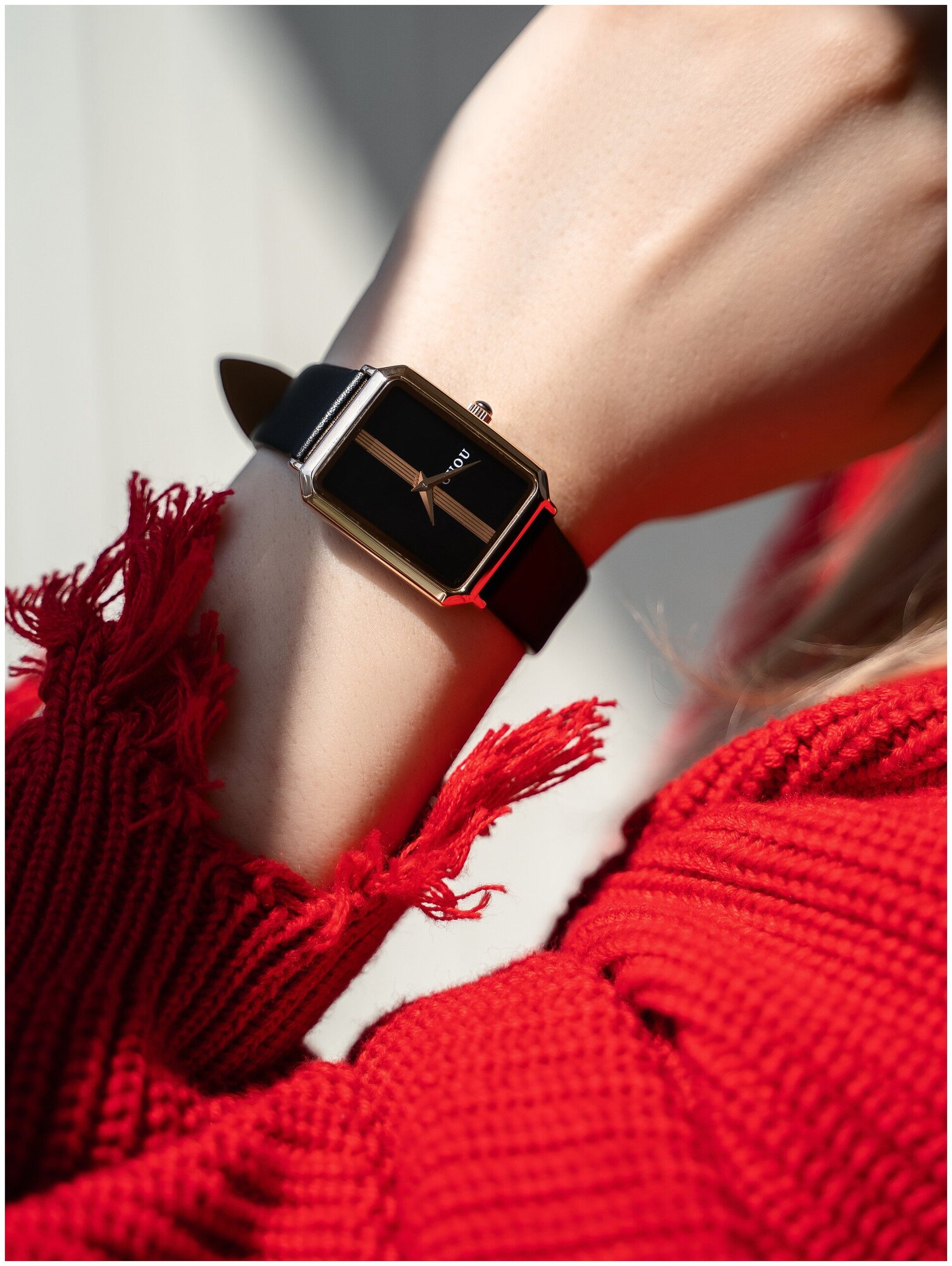 Наручные часы Часы женские наручные GUOU кварцевые квадратные с кожаным ремешком, классические под золото