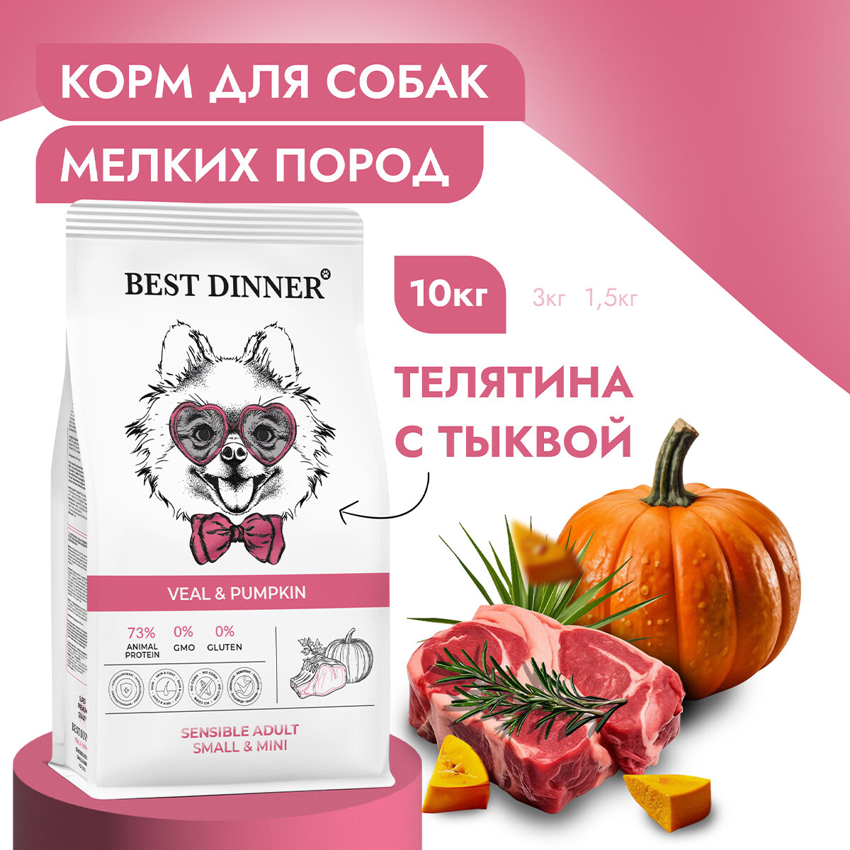 Сухой корм для взрослых собак Best Dinner Sensible с чувствительным пищеварением, телятина с тыквой 1 уп. х 1 шт. х 10 кг (для мелких и карликовых пород)