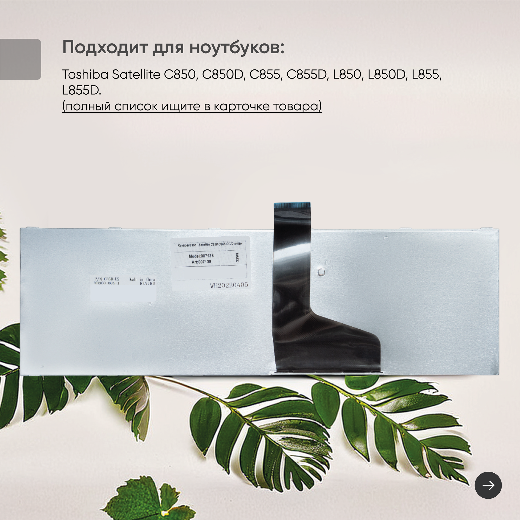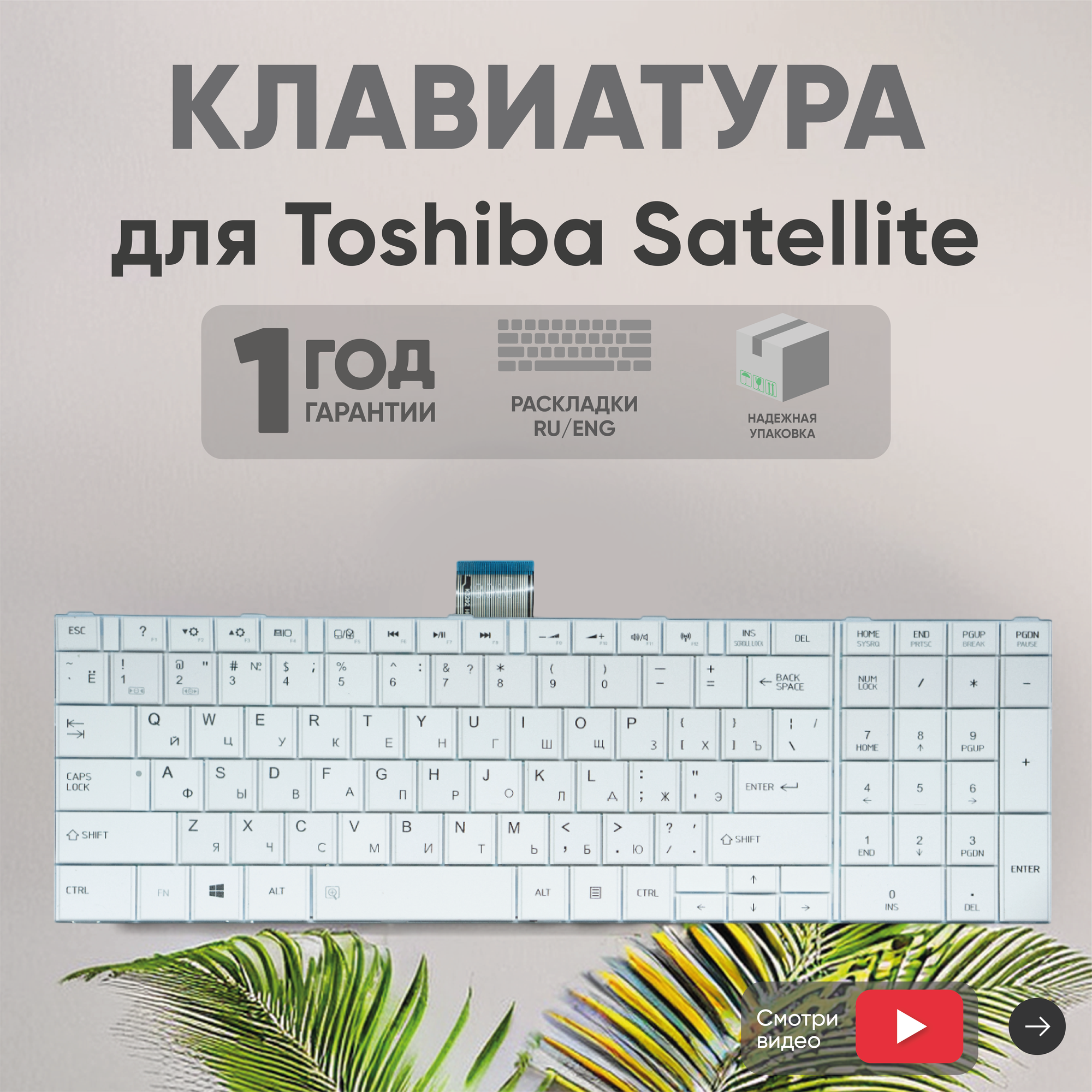 Ноутбуки Клавиатура (keyboard) MP-11B56SU-528 для ноутбука Toshiba Satellite C850, C855, C870, белая