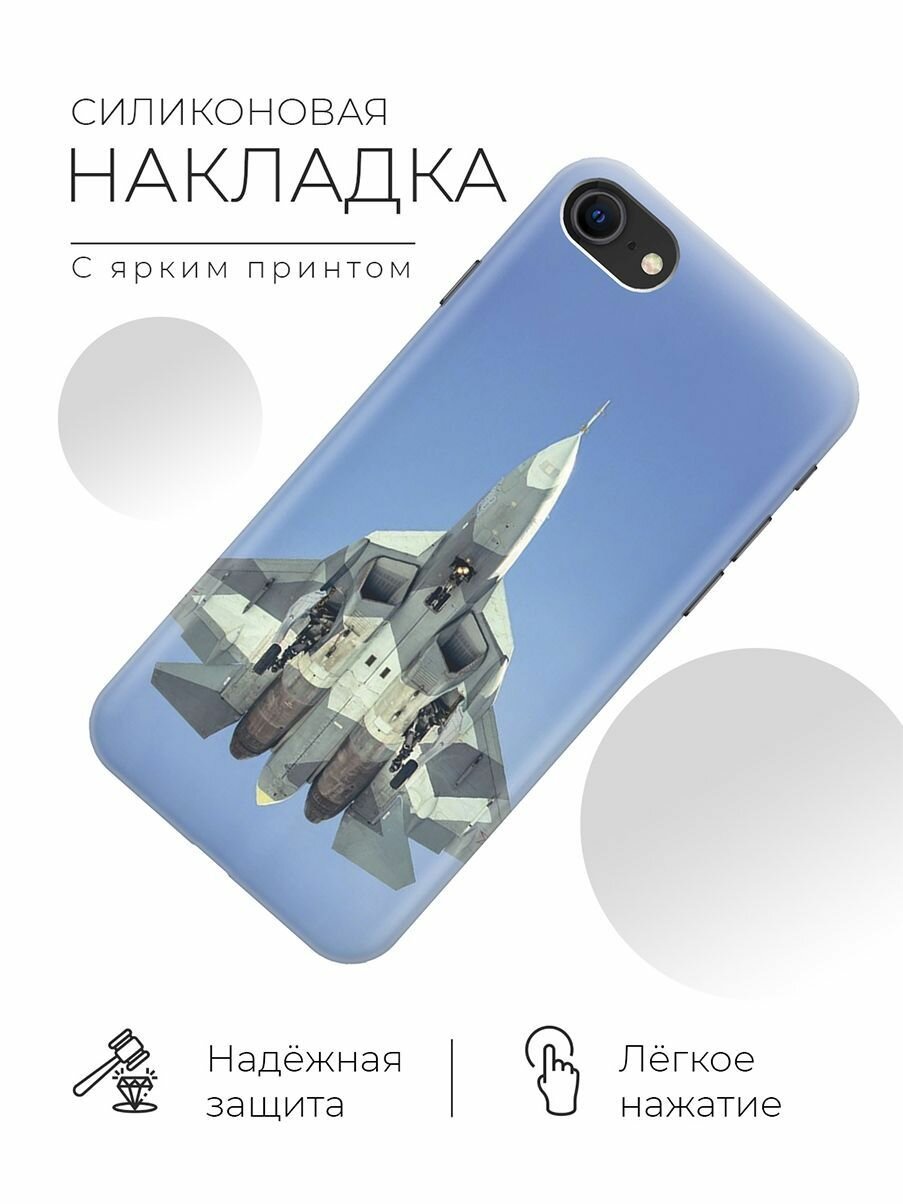 Мобильный телефон Силиконовый чехол на Apple iPhone SE (2022) / SE (2020) / 8 / 7 / Эпл Айфон СЕ 2022 / СЕ 2020 / 8 / 7 с рисунком "Взлет боевого самолета"