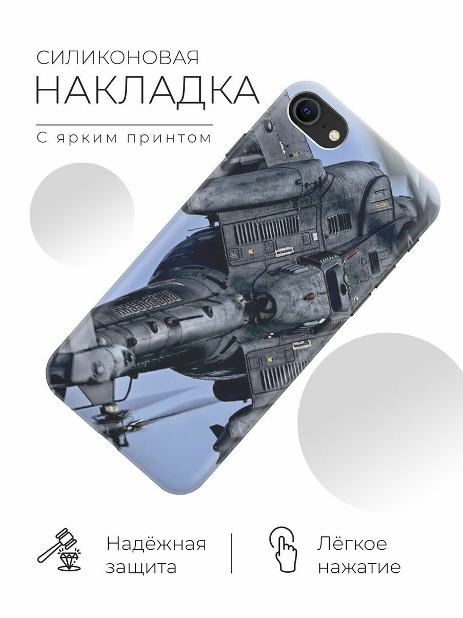 Мобильный телефон Силиконовый чехол на Apple iPhone SE (2022) / SE (2020) / 8 / 7 / Эпл Айфон СЕ 2022 / СЕ 2020 / 8 / 7 с рисунком "Боевой вертолет"