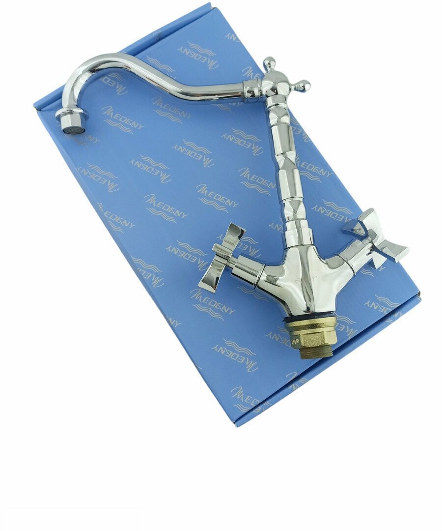 Смесители Смеситель EDENY для кухни двухвентильный. Цвет глянцевый хром, керамичесая кран-букса(1/2), материал латунь. Высота 260 мм, вынос излива 210 мм, крепление на гайке.