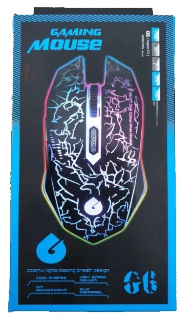 Мышки Игровая мышь проводная Gaming Mouse G6 черная с подсветкой , мгновенный отклик , 6 кнопок , длина 1,5 метра , провод в оплетке