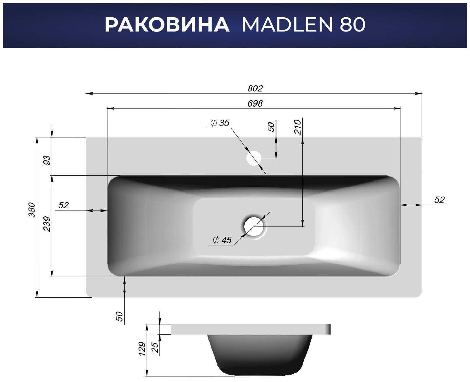 Лучшие цены. Раковина для ванной Итана Madlen 80 802х380х129 изготовлен из искусственного мрамора. Верхний слой Гелькоута образует декоративно защитное покрытие, которое легко мыть. Не содержит вредных для здоровья человека веществ, экологически безопасный. Шумопоглощающая поверхность. Имеет 1 готовое отверстие под смеситель, без перелива. Раковина может быть встроена на мебель, в столешницу и на подстолье. Изделия коллекции отлично впишутся в популярные и современные интерьерные решения для ванных комнат. Магазины в вашем городе.