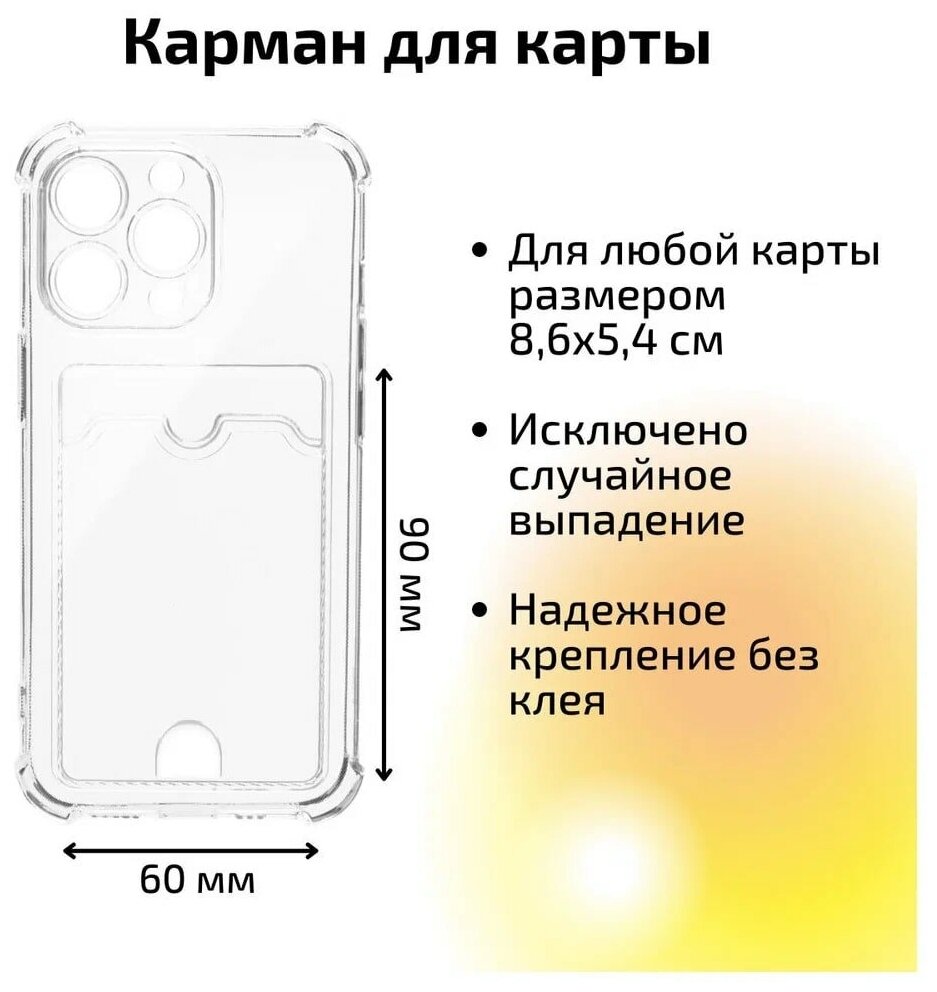 Чехлы для мобильных телефонов Чехол на iPhone 14 / на Айфон 14 с защитой камеры и отделением для карты / картхолдером силиконовый Прозрачный