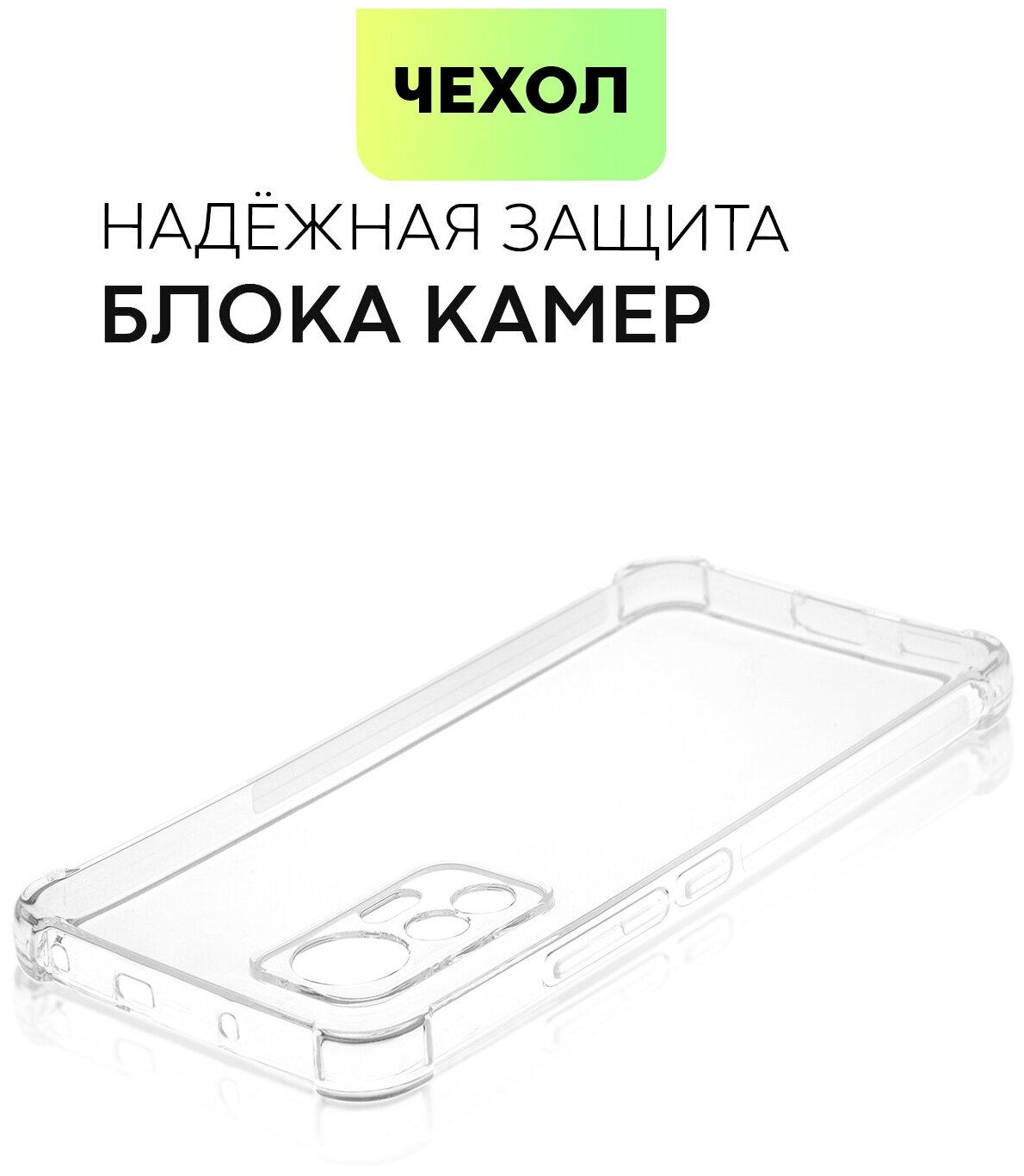 Чехлы для мобильных телефонов Противоударный чехол BROSCORP для Xiaomi 12 Lite (Сяоми 12 Лайт). Усиленные углы и бортик (защита) вокруг модуля камер, чехол прозрачный
