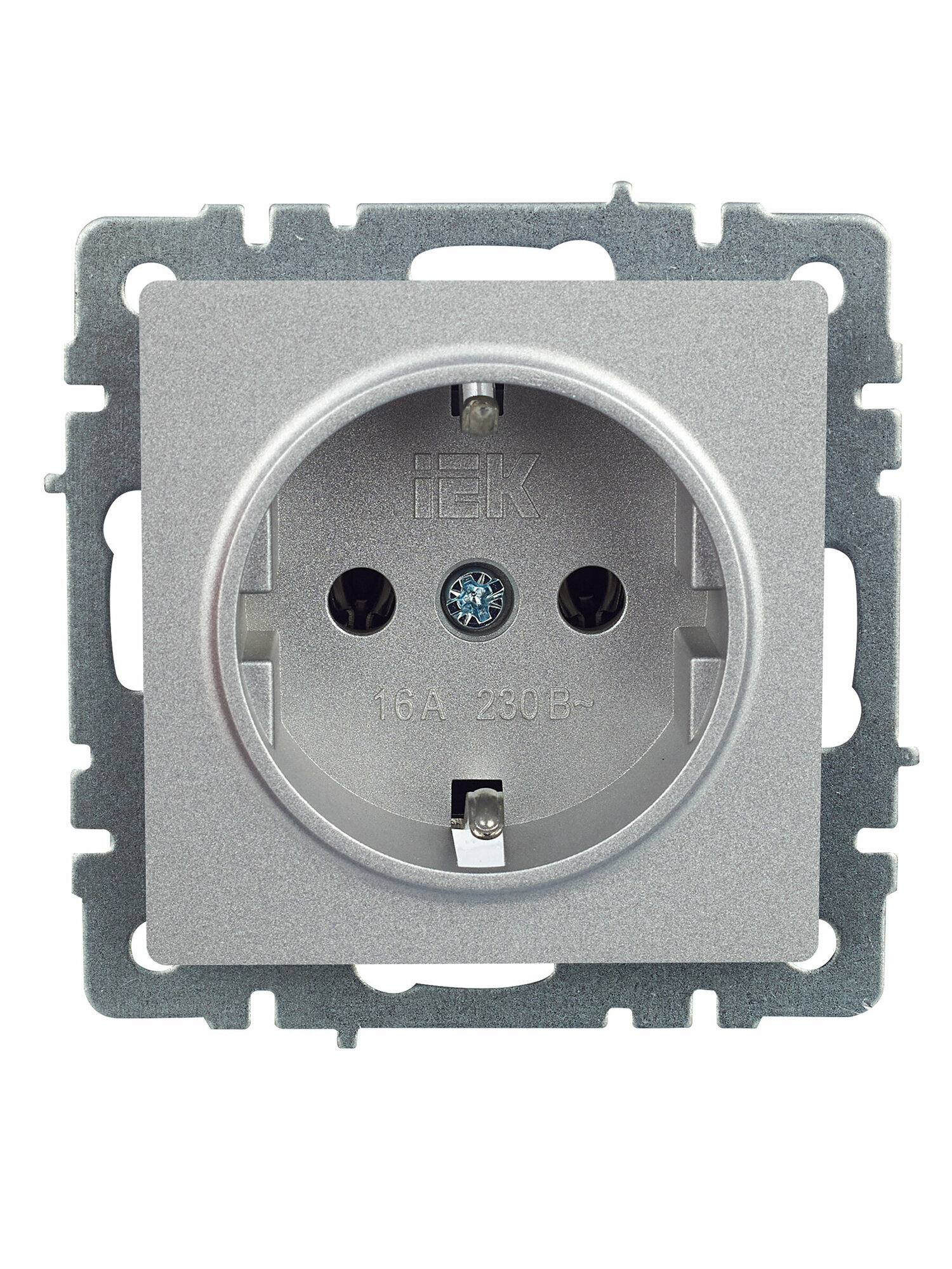 Розетки Розетка Iek BRITE РС11-1-0-БрА 16А с заземл. без защ. шторки алюминий, BR-R11-16-K47