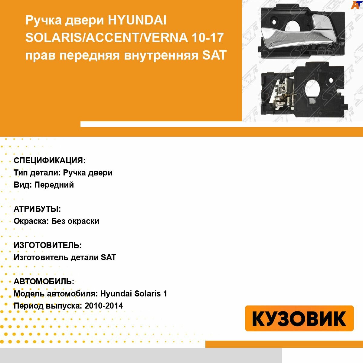Ручки Ручка двери HYUNDAI SOLARIS Солярис 10-17 правая передняя внутренняя