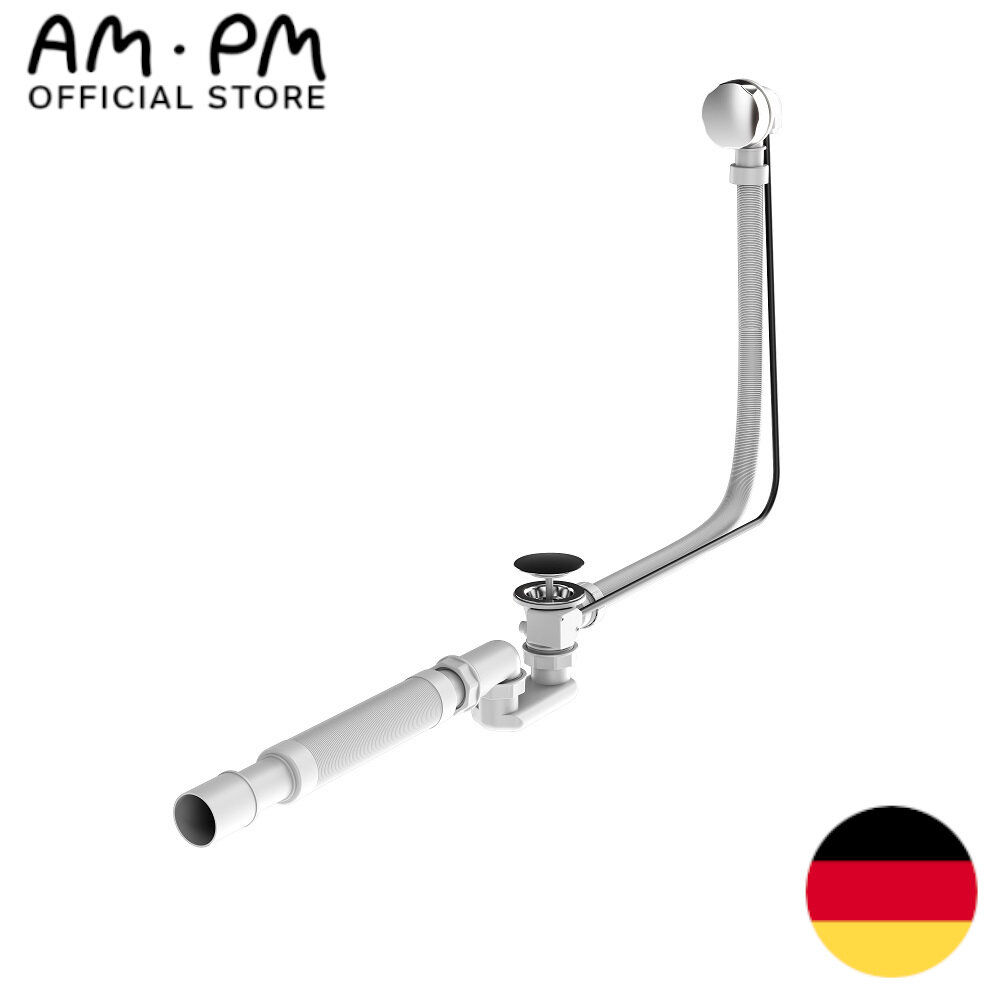 Слив перелив для ванны полуавтомат AM.PM W90A-000-OFI хром, для слива ванной 52 мм, слив-перелив комплект, длина 600 мм, сифон для ванны, Германия