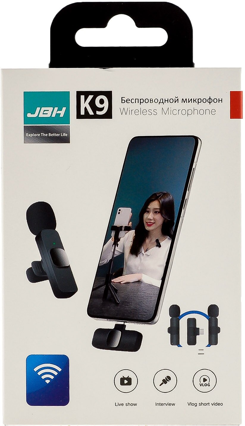 Микрофоны Беспроводной петличный микрофон K9 2-in-1, Lightning для Apple iPhone/iPad, Черный