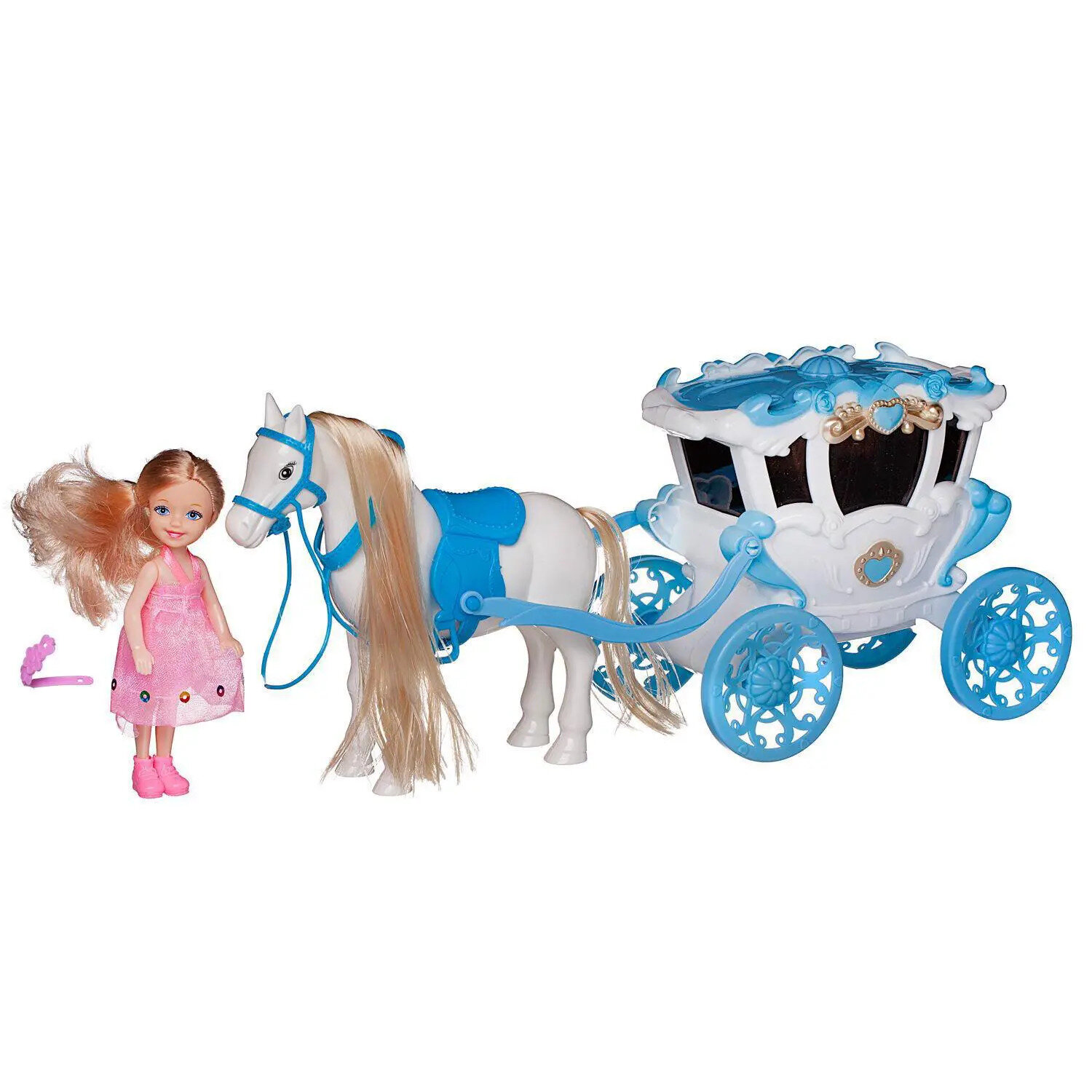 Куклы Игровой набор Junfa Лошадка, бело-голубая карета и куколка