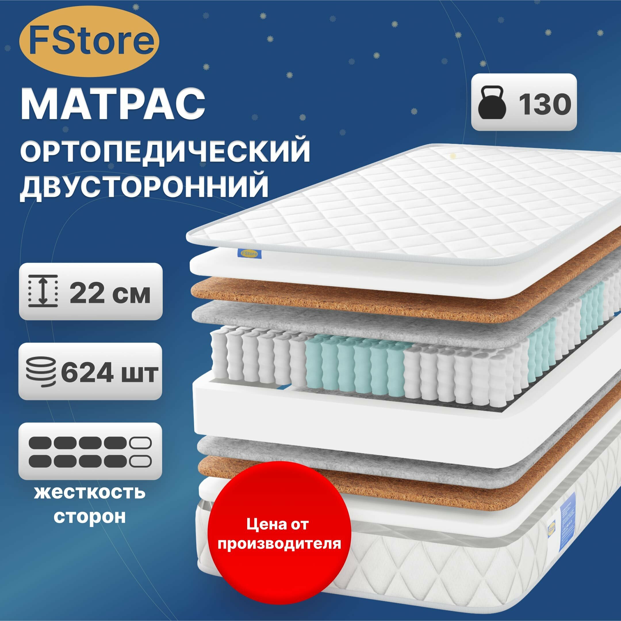 Ортопедический матрас FStore Orto Duo, Независимые пружины, 200х200 см 30 884 ₽ Подробнее