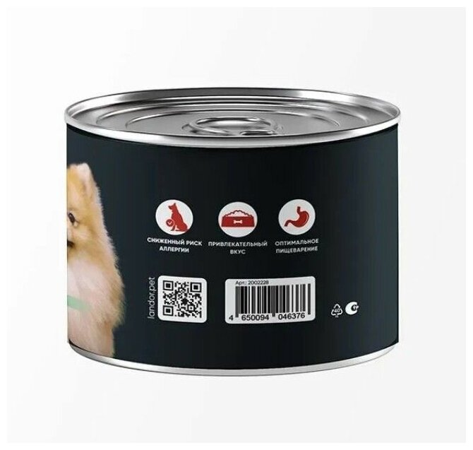 Landor полнорационный консервированный влажный корм для собак мелких пород Утка с зеленым горошком, 200 г. упаковка 6 шт