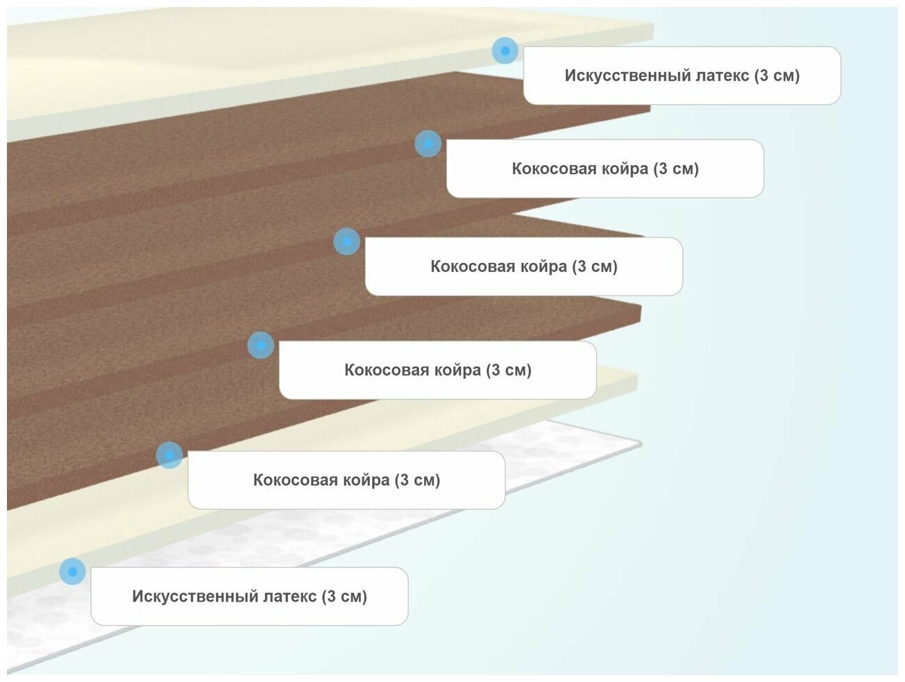 | Наполнитель | латексированная кокосовая койра, пенополиуретан, хлопок |
