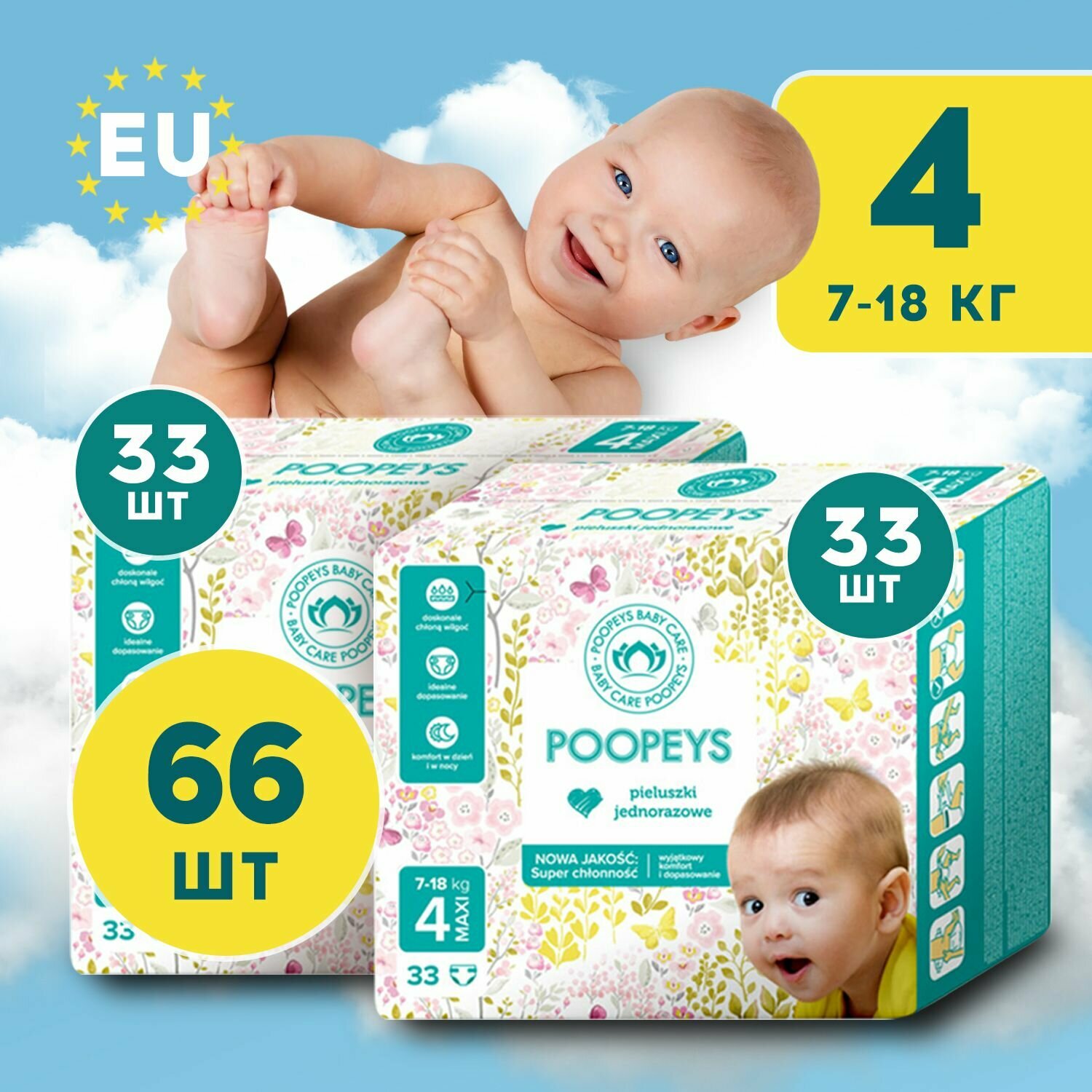 Подгузники (памперсы) Подгузники детские Poopeys MAXI 4 размер , 7-18 кг, 66 шт - набор 2уп