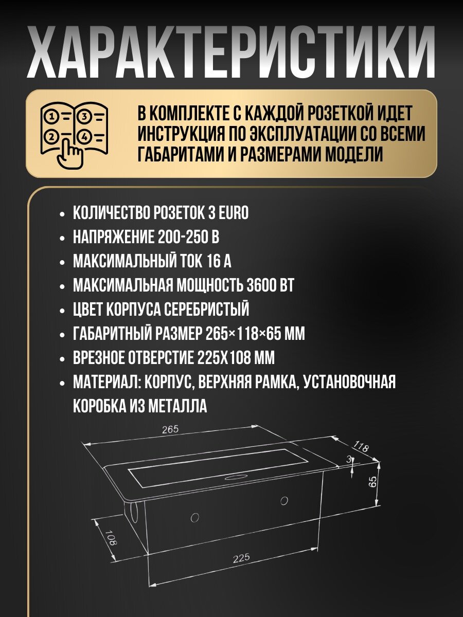 Встраиваемая выдвижная электрическая розетка в столешницу на 3 EURO, удлинитель для кухни, тройник, в стол, скрытая розетка 3 200 ₽ Подробнее