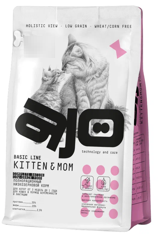 Корм для кошек AJO Cat Kitten&Mom сухой корм для котят, беременных и кормящих кошек с индейкой - 400 г