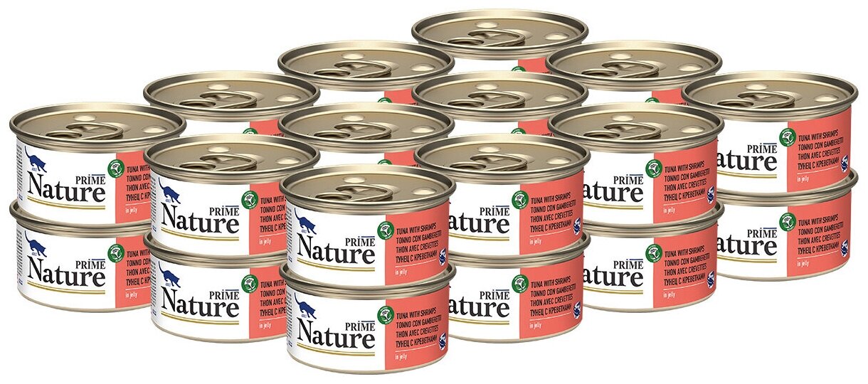 Корм для кошек Корм для кошек PRIME NATURE тунец с креветками в желе банка 85г (упаковка - 24 шт)