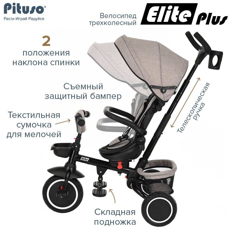 Лучшие цены. Трехколесный велосипед Pituso Elite Plus Складной велосипед, удобно и быстро складывается. Телескопическая родительская ручка управления, высота 94-97-100 см Рама: сталь Колеса закрытого типа из мягкой резины, на подшипниках. (имитация надувных) Колеса износостойкие. Переднее колесо D10 дюймов, задние колеса D8 дюймов Тормоз на задних колесах Функция свободного хода переднего колеса Подножка: складная центральная для ног ребенка 3-х точечный ремень безопасности Сиденье с функцией "360" - положение. Магазины в вашем городе.