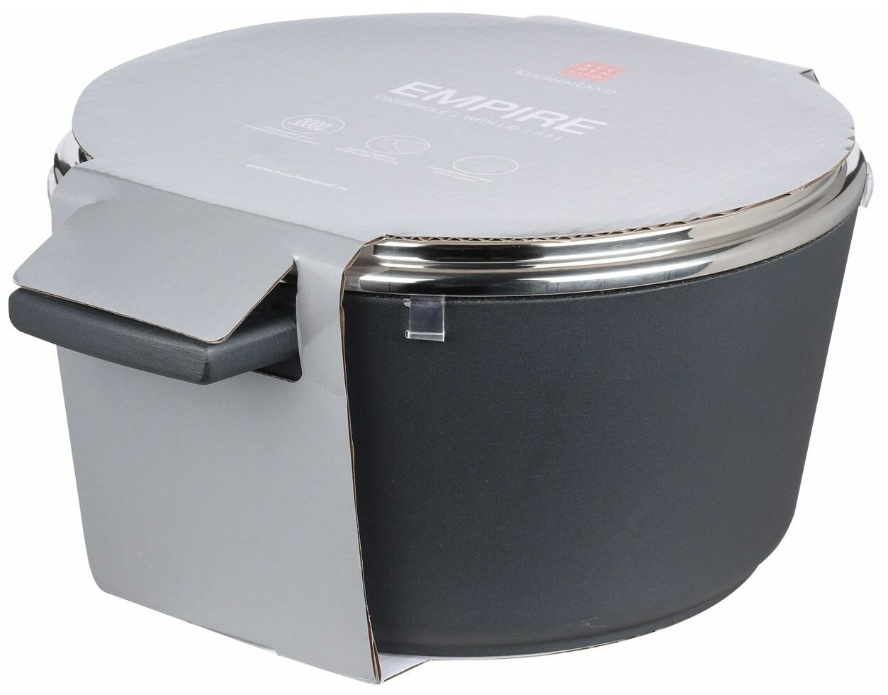 Кастрюли Кастрюля Kuchenland, 24 см, 4,5 л, с крышкой, с покрытием, алюминий, серая, Empire