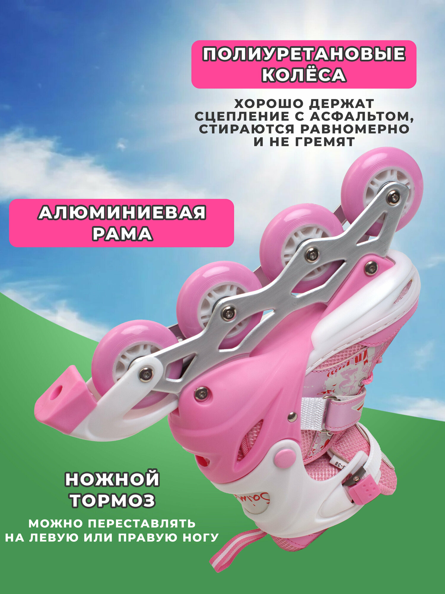 Ролики коньки 2 в 1 раздвижные Victory, размер M (35-38), розовый 2 898 ₽ Подробнее