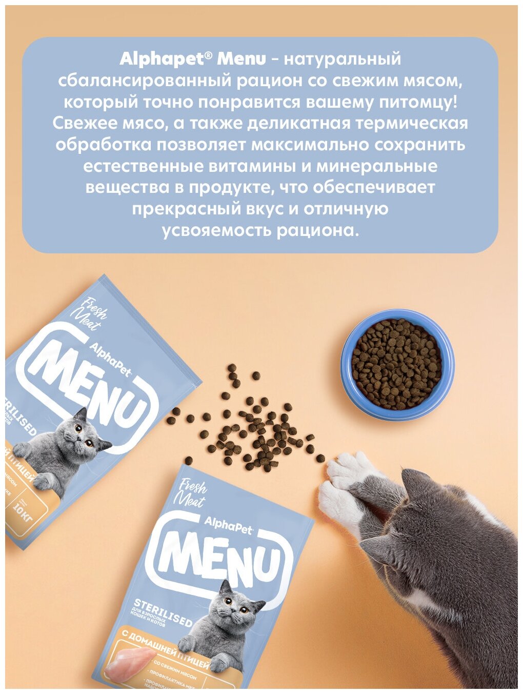 Корм для кошек AlphaPet Menu Сухой корм для взрослых стерилизованных кошек и котов с домашней птицей 10 кг