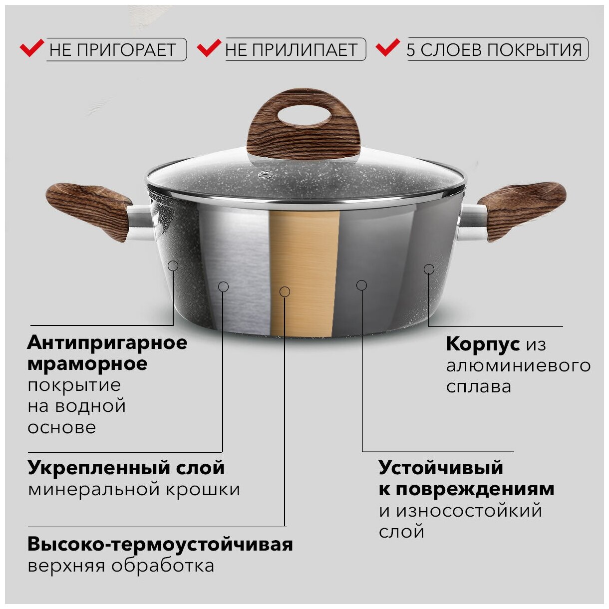 Кастрюли Кастрюля антипригарная с крышкой Moulin Villa Velour 24 см, 4 л