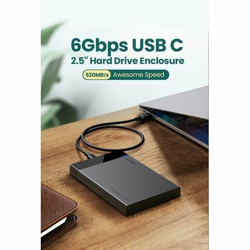 Лучшие цены. Внешний корпус для жесткого диска UGREEN US221 (50743) USB-C 3.1 To 2.5'' SATA Hard Drive Enclosure. Цвет: черный Вход: USB-C 3.1 GEN2 мама Выход: (7+15) Pin SATA 3.0 порт SATA 3.0 скорость до 6Gbps, совместим с SATA 2.0/1.0 USB-C 3.1 GEN2 скорость до 10Gbps, совместим USB 3.0&2.0 & 1.1 Поддерживает 2.5" SATA толщиной до 9.5мм и до 6TB Поддержка UASP Установка без инструментов Размеры: Д128.5 х Ш82 х В14 мм USB-C папа - USB-A папа длина кабеля: 50 см. Магазины в вашем городе.