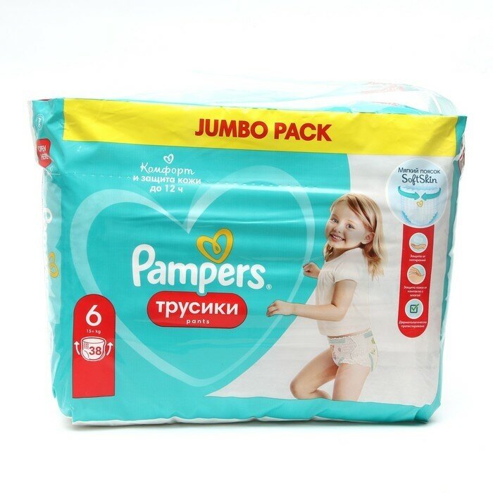Лучшие цены. Подгузники-трусики Pampers Pants для малышей 15+ кг, 6 размер. Универсальные. Вы заботитесь о нежной коже малыша и хотите, чтобы в трусиках малышу было по-настоящему комфортно? Попробуйте новые трусики Pampers Pants с анатомической посадкой! Супермягкий эластичный поясок нежно прилегает к животику, мягкие бортики вокруг ножек помогают защитить нежную кожу малыша от натираний, а технология мгновенного впитывания удерживает влагу внутри, обеспечивая сухость до 12 часов - как днём, так ночью. Магазины в вашем городе.