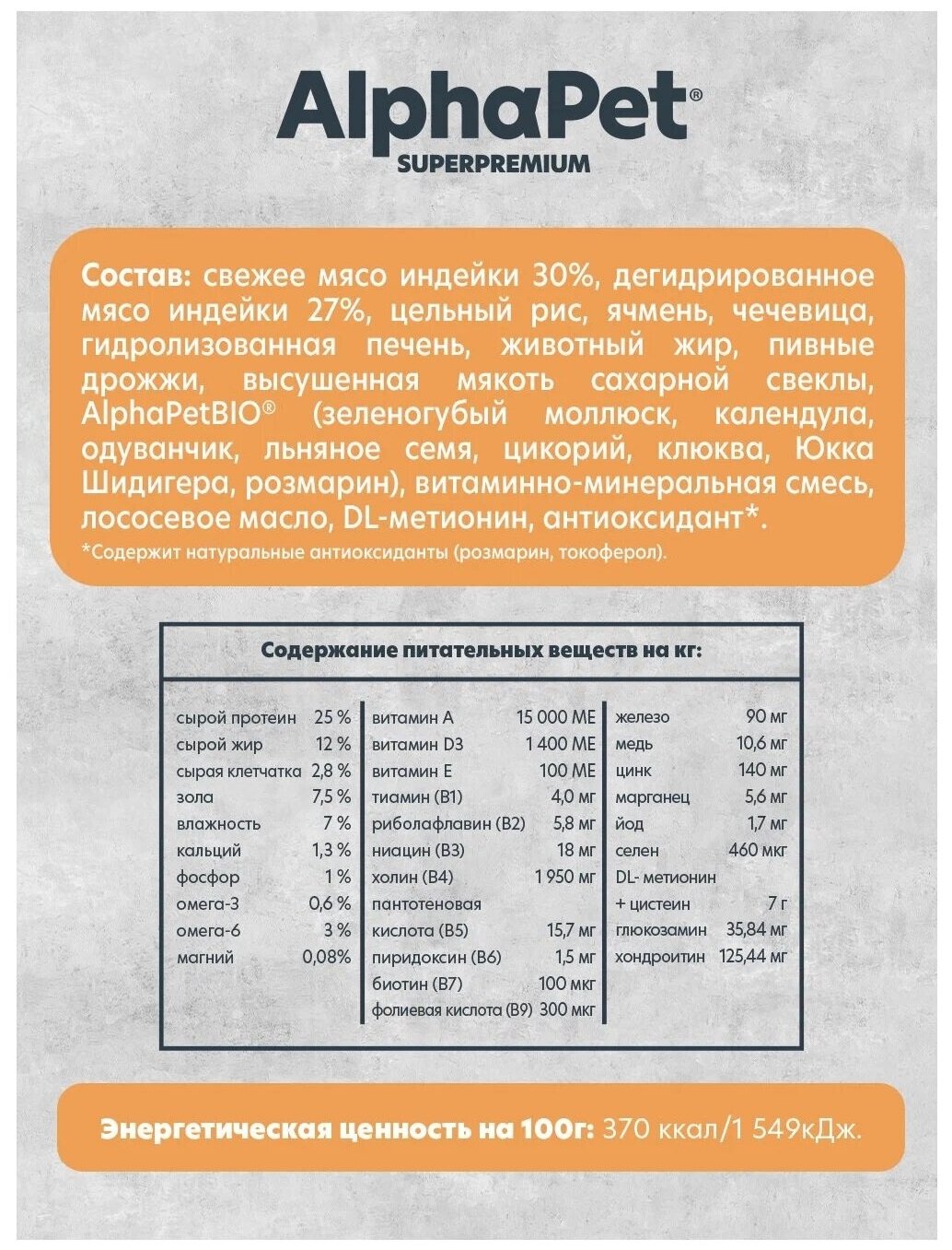 Сухой корм для собак средних пород AlphaPet, индейка, 12 кг 12 261 ₽ Подробнее