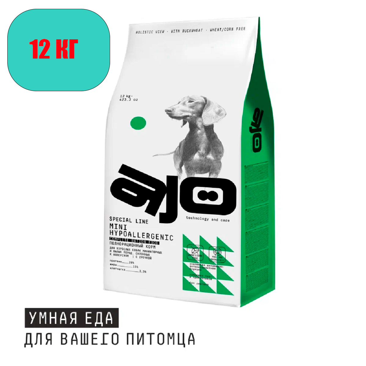 Лучшие цены. AJO Mini Hypoallergenic Сухой полнорационный корм с гречкой для взрослых собак миниатюрных и малых пород, склонных к аллергиям 12 кг. Легкоусвояемые белки, отсутствие глютена и комплекс про- и пребиотиков для профилактики проявлений аллергии и нормализации пищеварения. Питомцев начинают приучать к новой пище с 3-4 недель. В первое время сухие корма необходимо смачивать водой или молоком. По мере подрастания, постепенно уменьшают количество жидкости. Магазины в вашем городе.