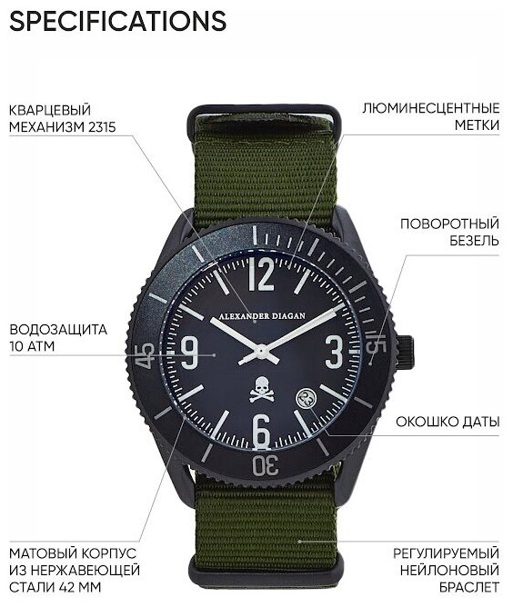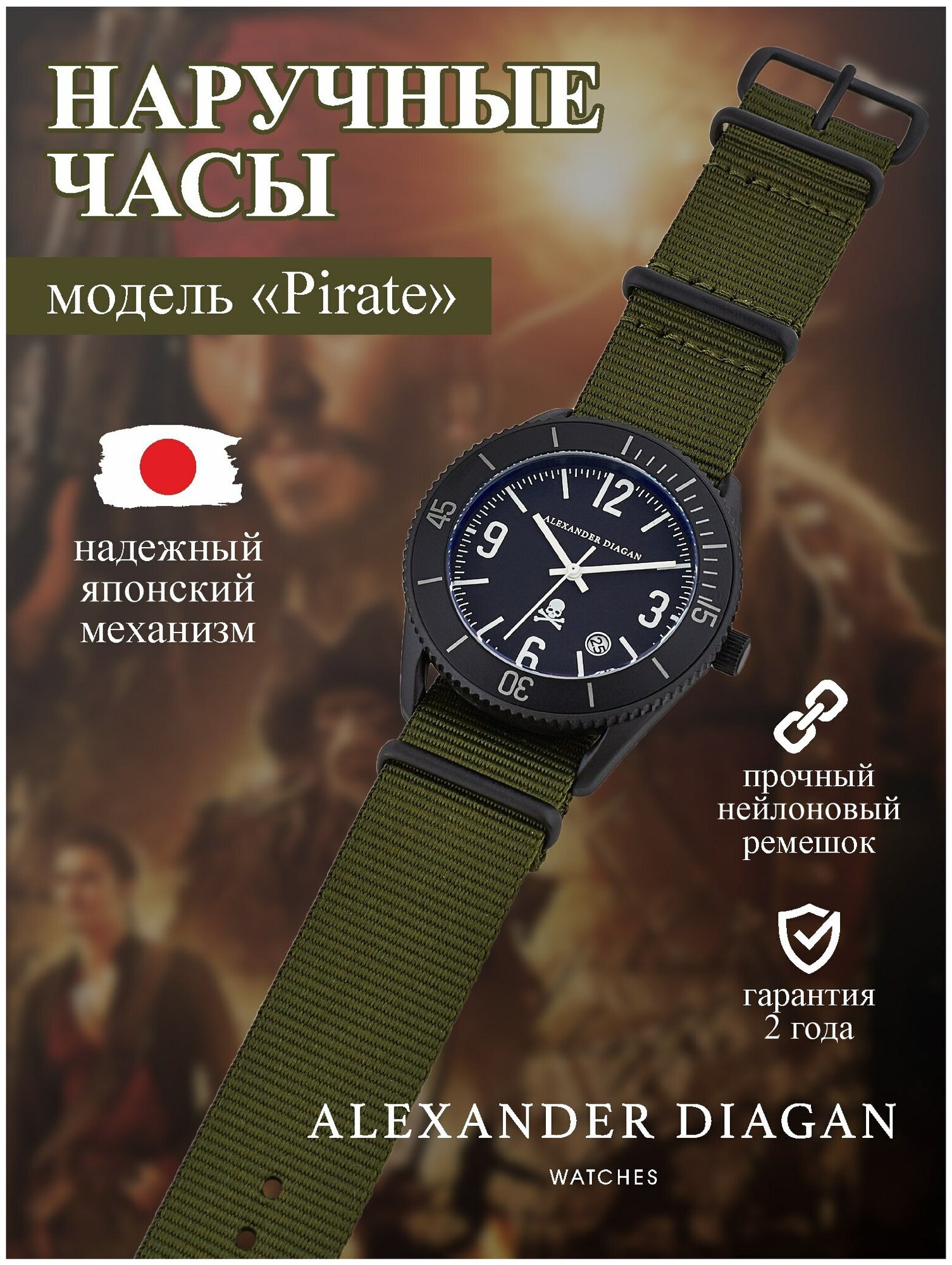 Наручные часы Часы наручные мужские Alexander Diagan Pirate водонепроницаемые из стали
