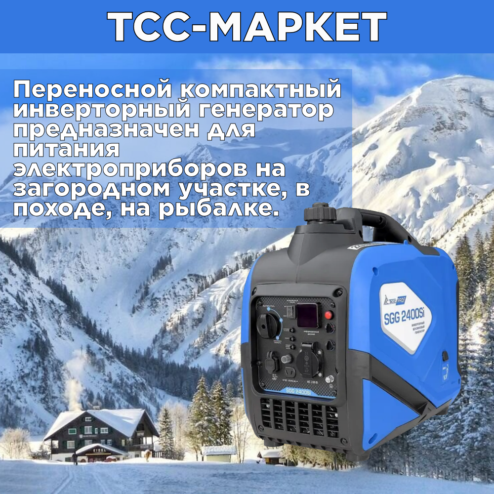 Бензогенератор ТСС SGG 2400Si, 2400Вт, инверторный, с кожухом, 1 розетка 220В 37 243 ₽ Подробнее