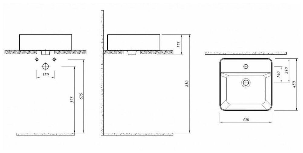 Умывальники Раковина квадратная SMARTEDGE 45х45 см (белый, матовый, шт.