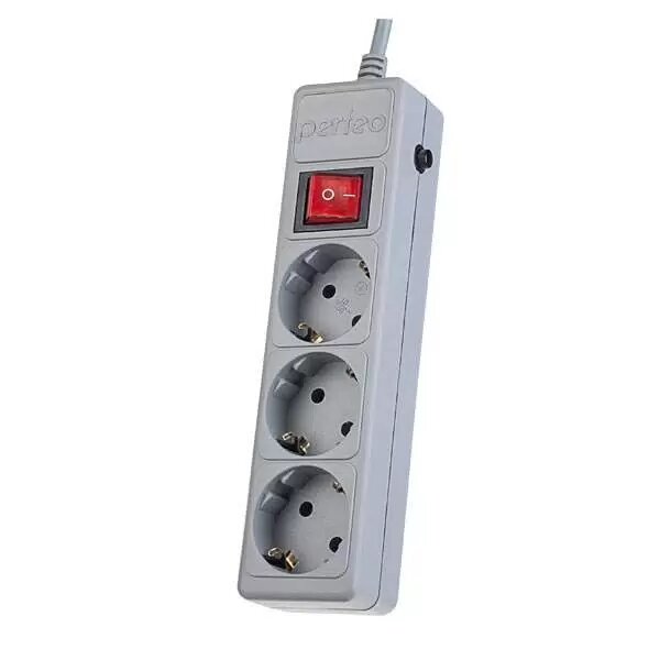 Сетевые фильтры и удлинители Сетевой фильтр Perfeo POWER+ 3,0м, 3 розетки, серый