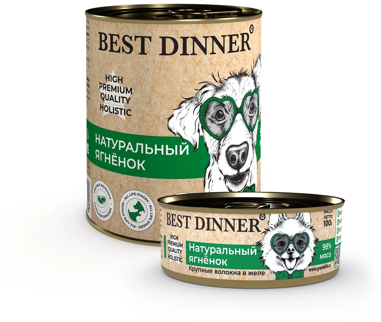 Бест Диннер консервы для собак High Premium "Натуральный ягненок", 12 шт по 340 гр. (для собак и щенков с 6 месяцев)