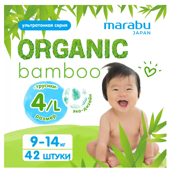 Подгузники (памперсы) Набор 3 х Marabu (Mioki) трусики BAMBOO L (9-14 кг), 42 шт