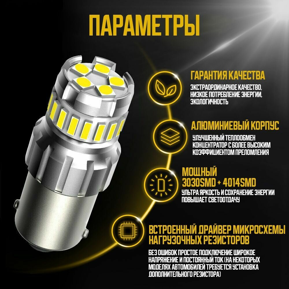 Автолампы Светодиодная лампа AUXITO 1156 P21W цоколь BA15S 2шт одноконтактная 6500К белый свет LED автомобильная