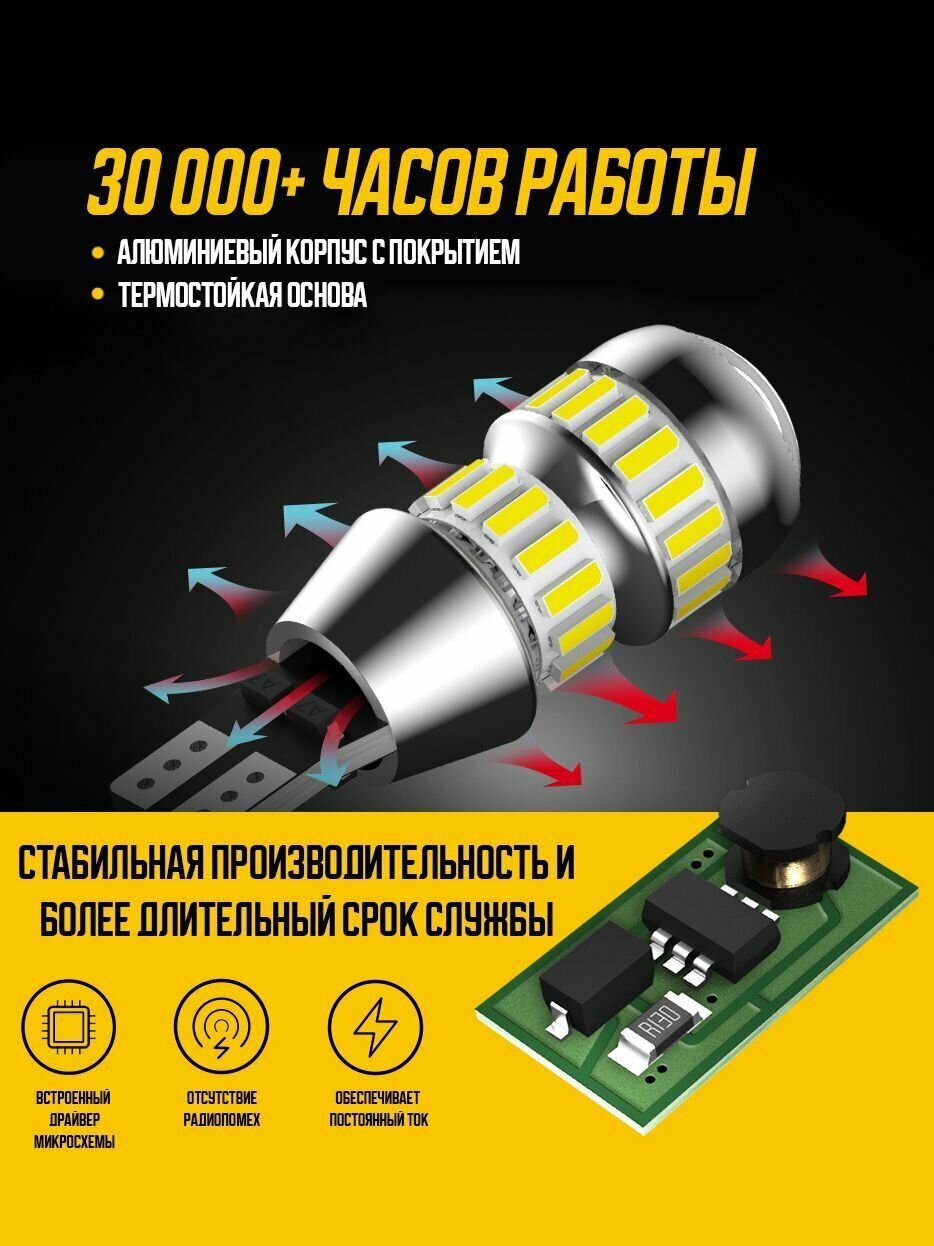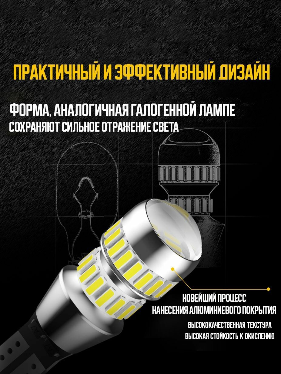Автолампы Светодиодная лампа с линзой AUXITO T15 W16W цоколь W2.1x9.5d 2шт 6000К белый свет задний ход LED автомобильная
