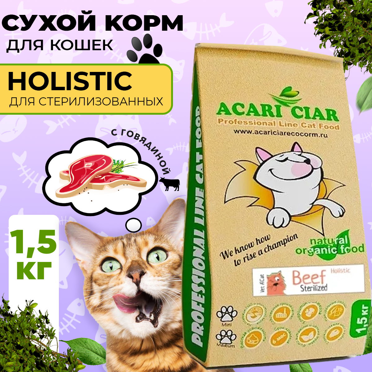 Корм для кошек Сухой корм для кошек Acari Ciar A`Cat STERILIZED Beef 1,5кг со вкусом говядины