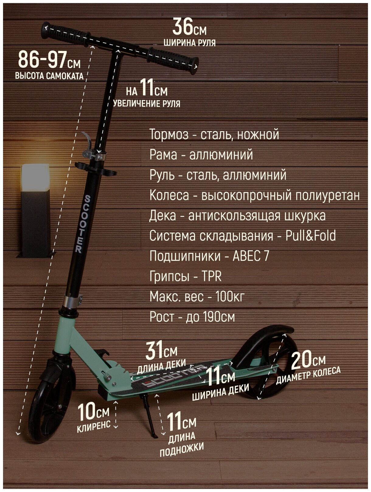 | Функции и возможности | складываемый / регулировка высоты руля |