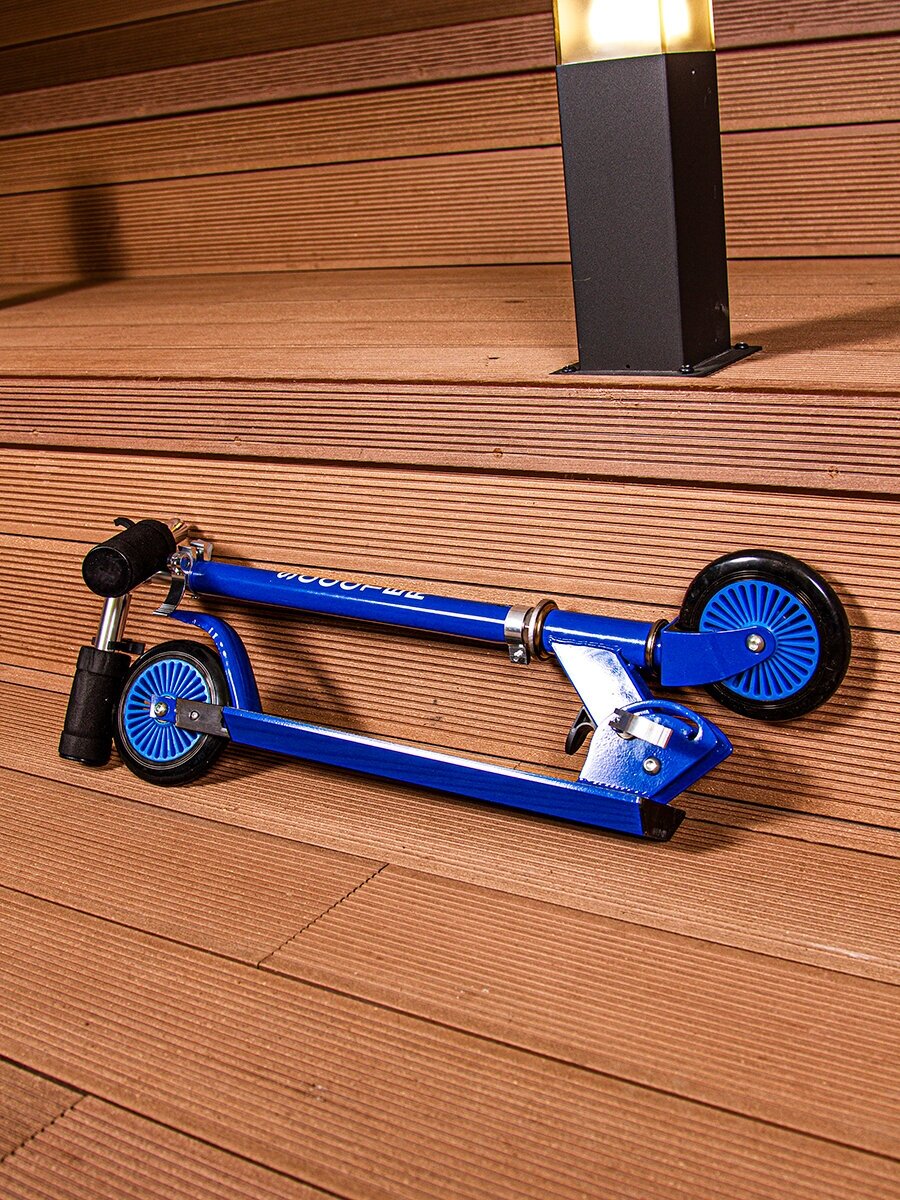 Электросамокаты Самокат двухколесный детский складной (синий) Just for fun городской до 7 лет / 100 кг для ребенка девочки мальчика 64х30х79 см, колесо 120 мм