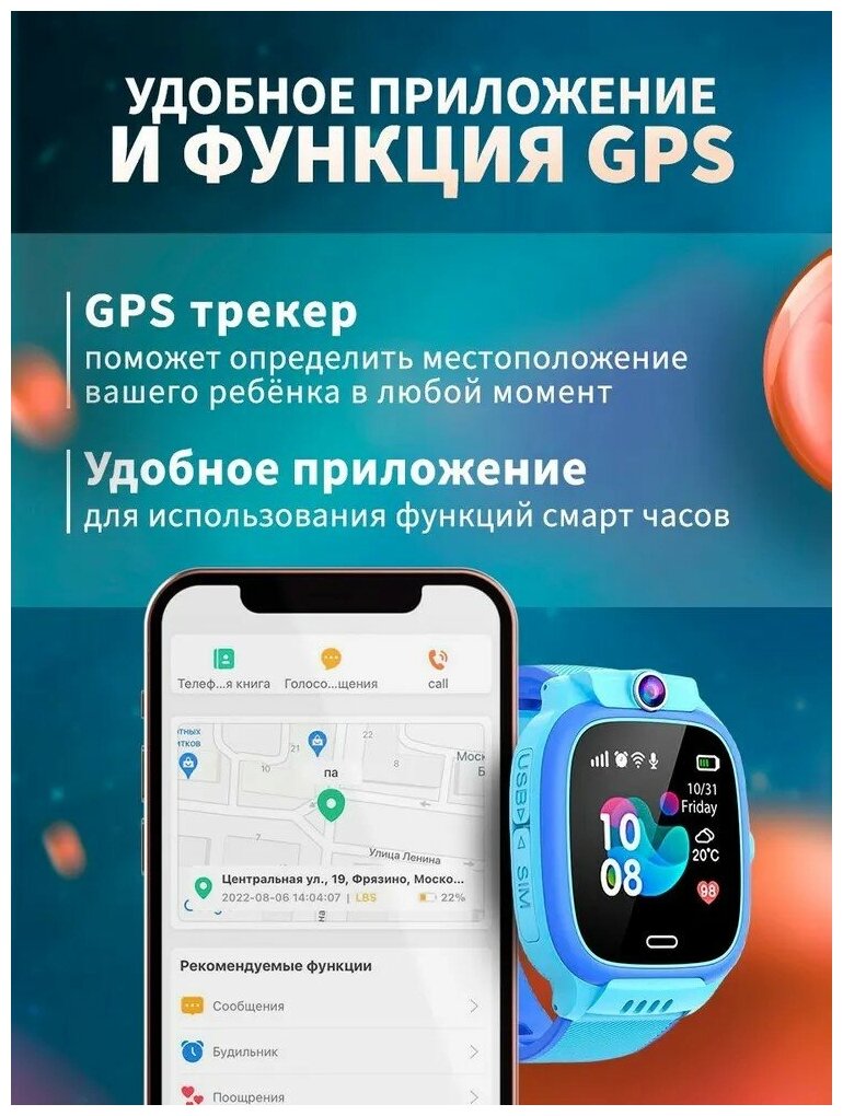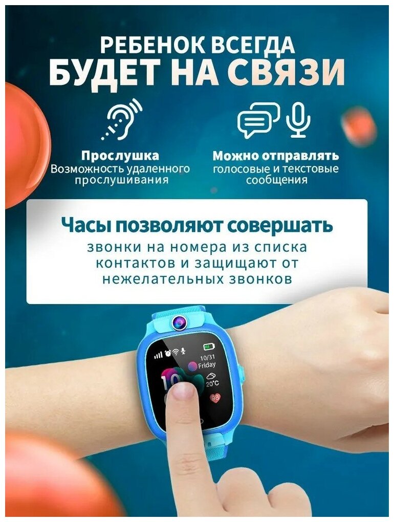 Смарт часы и фитнес браслеты Детские смарт часы, смарт часы детские с сим картой, GPS трекер, камера, сенсорный экран, встроенный будильник, 720mAh, голубой